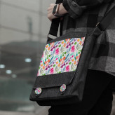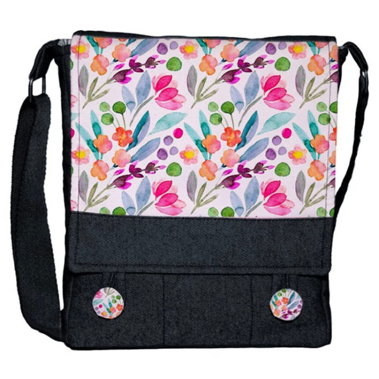 کیف دوشی چی چاپ طرح نقاشی آبرنگی گل گلی کد 65905 مشکی